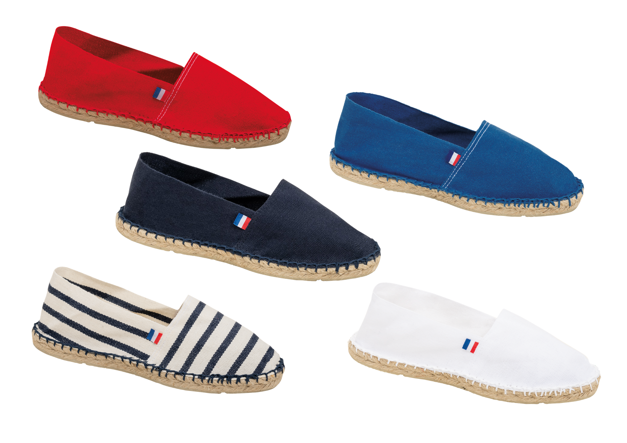 - Fabrication française : Semelles en caoutchouc vulcanisé et jute.